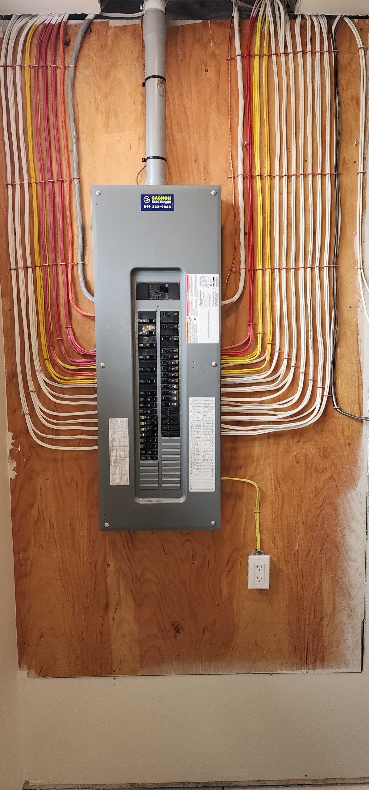 Le panneau électrique assure à la fois le rôle de distributeur et de protecteur de vos connexions électriques : assurer sa conformité est donc essentiel. Si votre construction date de plus de 30 ans et que votre panneau électrique est celui installé à l’origine, il ne respecte vraisemblablement plus les normes actuelles. Confiez-nous le soin de mettre à niveau votre panneau électrique pour que votre circuit électrique soit sécuritaire et efficace pour vos appareils et vous.